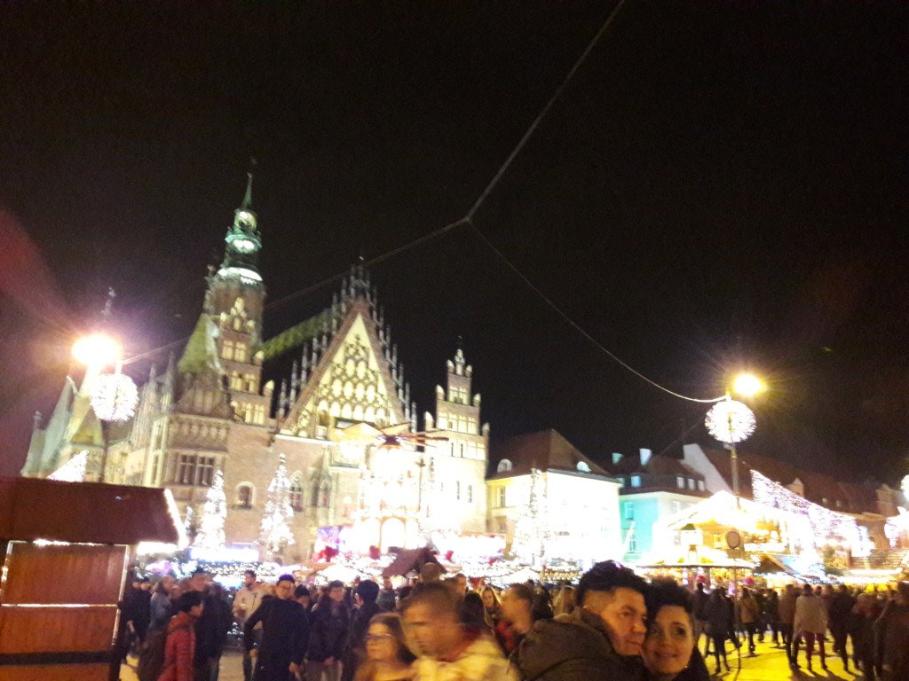 Schmuck, Schilder und Schnee strahlen mit dir um die Wette. Du hättest dich gerne noch etwas weiter gesonnt – unter dem Licht des übergroßen Weihnachtsbaumes und den Sternen Breslaus…
