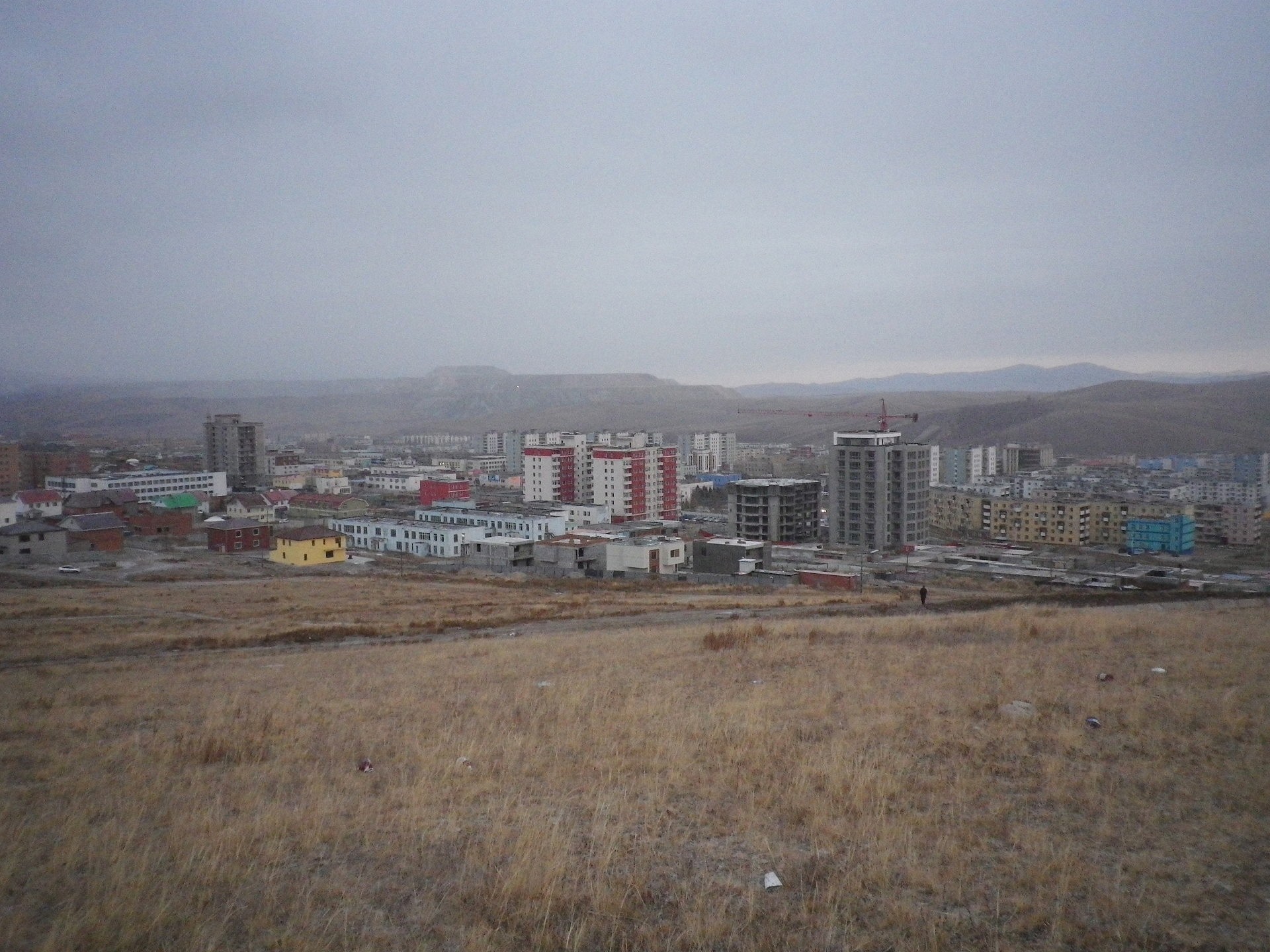 Erdenet bedeutet auf Mongolisch „kostbarer Schatz“ und spielt auf die Kupfermine an, die ausserhalb der Stadt liegt und der Grund ist, warum Erdenet ueberhaupt existiert. Mein Reisefuehrer verraet mir, dass die Stadt in den 70er Jahren mit der Gruendung der Mine grossgeworden ist und seit jeher eine Arbeiterstadt ist. Besonders viele Russen lebten in Erdenet und auch heute noch gibt es eine russische Minderheit (10% der Einwohner) samt eigener Botschaft. Die Mine ist bis heute mit der Teppichfabrik der groesste Arbeitgeber und – laut Wikipedia – auch ein entscheidender Faktor in der mongolischen Wirtschaft. Auch die Einwohner sind stolz auf „ihre“ MIne und erzaehlen mir, sie sei die zehntgroesste weltweit (Das kann ich weder widerlegen noch bestaetigen). Allerdings gehen Experten davon aus, dass sie in den naechsten 30 Jahren erschoepft sein wird.