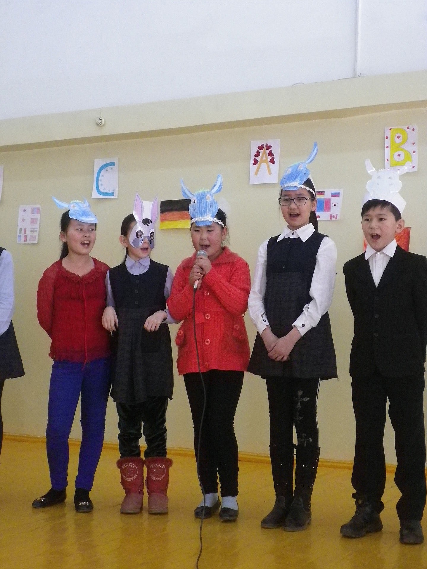 Und so entschlossen wir uns – oder besser gesagt Chantsal und Nagi, unsere neue tatkraeftige Unterstuetzung, ich kaempfte zu der Zeit in UB gegen die Windmuehlen der Buerokratie – diese Szenen auf die Buehne zu bringen. Dazu ein paar Lieder, ein Gedicht und ein etwas groesseres Theaterstueck fuer mehrer Kinder.
