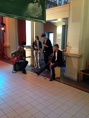 Vor der Jahreswende im Dezember habe ich viel Besuch bekommen, den ersten kleinen Schnee in Riga erlebt, 3 Konzerte mit meinem Schulchor gegegeben (davon ein Spontankonzert in der Stadt Jelgava auf einem Aussichtsturm), trotz immer noch nicht vorhandenem Ofen Weihnachtsplätzchen (in Valmiera) gebacken und bin mit Sophie (Freiwillige in Perm, Russland) zu dem Weihnachhtsball in meiner Schule gegangen. Dieser Ziemassvetkuballe wird jedes Jahr von der Schülervertretung organisiert und ist eine echt schöne Sache. An dem Abend vor dem letzten Schultag (18.12.) konnte man schick gekleidet (wenn bei den Letten schon extra schick gesagt wird, dann ist es wirklich schick –> Männer (oder eher Jungen) im Anzug und die Mädchen teilweise auch in Ballkleidern) mit einer vorher erworbenen Eintrittskarte in die Schule kommen. Dort hatte man dann mehrere Möglichkeiten in verschiedenen Räumen den Abend mit seinen Freunden zu feiern: es gab einen Karaoke- Raum, wo die Letten lauthals lettische Volkslieder sangen; einen Raum wo kurze Mr. Bean Filme gezeigt wurden; einen Raum, wo man am Klavier performen konnte; einen Raum fürs Fotoshooting und natürlich die große Aula, wo ab einem Zeitpunkt Live- Musik gespielt wurde und die Letten ihre herausgeputzten Mitschülerinnen zu einem Tanz auffordern konnten. Ein wirklich toller Abend!