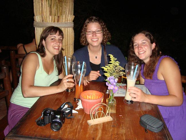 Mazunte ist ein lustiger Ort. Mitten zwischen den Touris, von denen die meisten ziemliche Hippies sind, gibt es Hütten und Hühner, dann wieder Hostels, Bars und Restaurants. Der Strand ist sehr schön, es gibt mehrere Buchten zwischen hohen Felsen. Die Wellen sind recht hoch und schon recht stark… mich hats ein paar Mal echt von den Füßen gerissen;) Unsere Unterkunft war sehr einfach, hatte keinen Namen und bestand aus nur 6 Zimmern. Das „Bad“ war quasi draußen und irgendwie herrschte Campingatmosphäre. Mir hats aber sehr gut gefallen:) Auf ihrer ewigen Hostelsuche hatte Lena eine nette Argentinierin namens Ariadna aus Buenos Aires kennen gelernt, mit der wir öfters was unternommen haben.