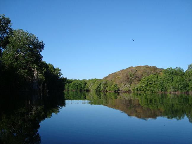 Am nächsten Tag bin ich mal wieder früh aufgestanden und hab noch eine andere Tour mitgemacht, dieses Mal zu einer Lagune namens Manialtepec, nicht weit von Puerto Escondido entfernt. Mein guía war ein kanadischer Vogelexperte und noch zwei deutsche Mädels, die in Mexiko studiert haben, waren mit dabei. Mit einer lancha, einem kleinen Motorboot, sind wir über die Lagune gefahren, die groß und wunderschön war, klares Wasser, viel grün, Palmen und diverse Vögel, die uns der Kanadier alle erklärt hat. Ein Krokodil haben wir auch gesehen, aber das war so gut getarnt, dass ich es nie entdeckt hätte und man musste sehr genau hingucken, um es zu erkennen.