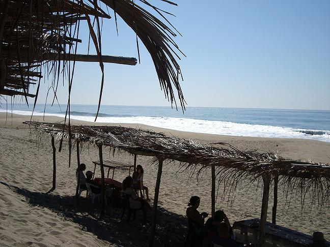 Und nachmittags hab ich mich auf den Weg nach Mazunte gemacht. Lena wollte dort ein Hostel suchen und dann wollten wir uns per Handy absprechen, wo wir uns treffen… einziges Problem war dann nur: In Mazunte hat man keinen Empfang! Tja, da merkt man erstmal, wie abhängig man vom Handy ist… Das heißt, an einigen wenigen Teilen des Strandes hatte man doch Empfang, so hab ich versucht, in der prallen Nachmittagssonne Lena vom Strand aus zu erreichen, die zu dem Zeitpunkt sich aber natürlich nicht auch zufällig an einem Strandabschnitt mit Empfang befand… Was tun??? Ich hab meine Sachen bei einem Hostel untergestellt um nicht auch noch alles tragen zu müssen, und hab mich auf die Suche nach Lena gemacht… Eine Möglichkeit, den Ort, der zum Glück ziemlich klein ist, kennenzulernen, ist von Hostel zu Hostel zu gehen und zu fragen, ob denn heute zufällig eine Lena angekommen sei. Irgendwann hab ich zwei Holländer getroffen, die die glorreiche Idee hatten, ich könnte ja mal per Internet versuchen Lena zu erreichen. Also hab ich das nächste Internetcafé angesteuert, mir für die Nerven und gegen die Hitze ein Schokoeis gekauft, meine Mails geöffnet und… eine Mail von Lena mit dem Betreff „Bin hier in Mazunte ohne Empfang“ gesehen! Also haben wir uns nach einer 2stündigen Suche doch noch getroffen;)