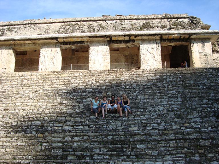 Die 12stündige Hinfahrt nach Palenque in Chiapas, einem Bundesstaat ganz im Süden Mexikos, hat natürlich erstmal nicht 12 sondern 14 Stunden gedauert… aber was solls, war ganz ok. In Palenque sind wir also am 23.12. vormittags angekommen. Unsere Unterkunft war in einer dschungelmäßigen Anlage, die Fenster hatten keine Fensterscheiben, sondern nur Fliegengitter, was bei dem Klima auch total angebracht war. Es war so schön warm und sonnig und endlich mal wieder feuchte Luft, nach dem es hier in der Stadt immer so trocken ist! In Palenque haben wir uns zunächst die imposanten Mayaruinen angeschaut, die wirklich beeindruckend sind!