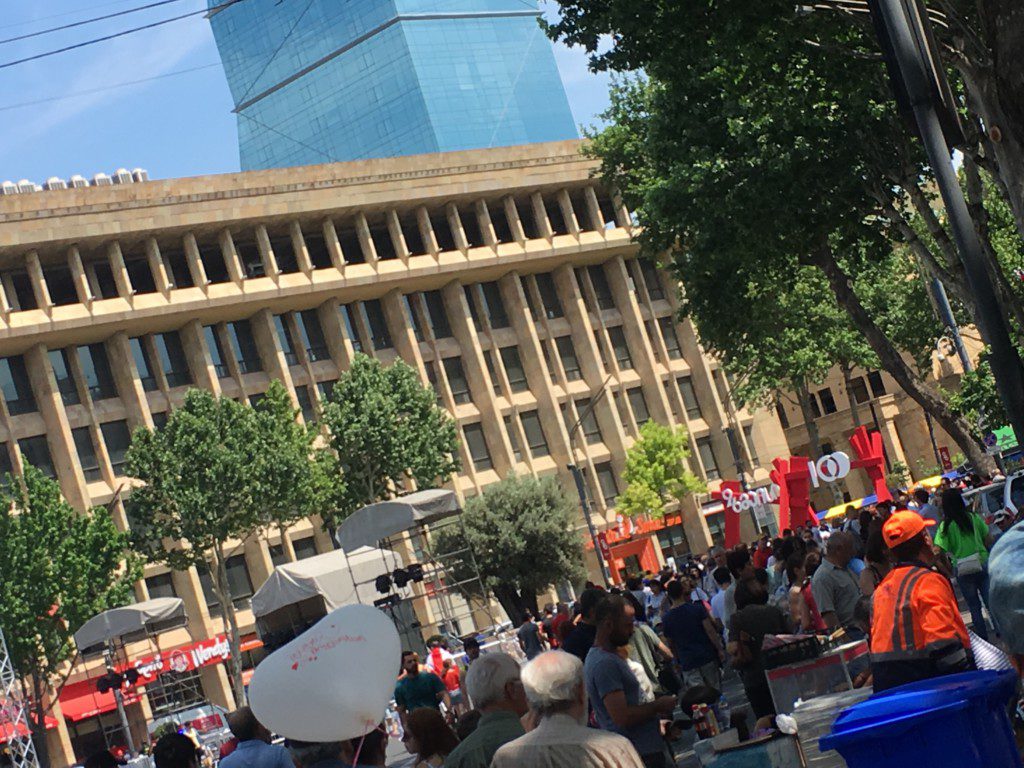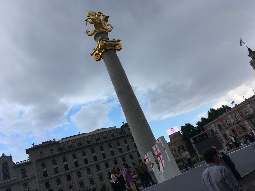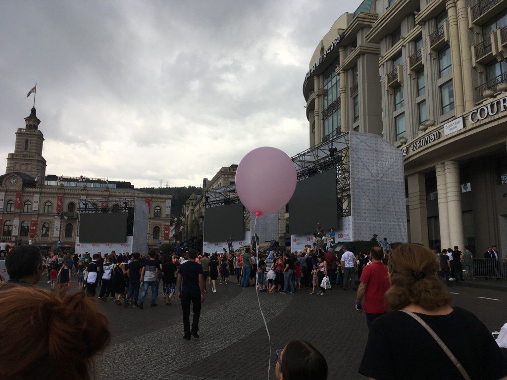 Die ganze Rustaveli Avenue verwandelte sich in ein großes Straßenfest, zwischen einer großen Musikbühne an der Metro Rustaveli und Zuschauertribünen für eine Parade am Freiheitsplatz. Dazwischen, von Wimpelketten gesäumte, Stände von jungen Designern und Essen und historischen Informationen.