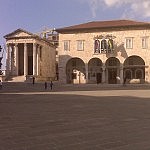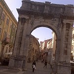 Freitag haben wir dann bei herrlichstem Wetter Pula besichtigt. Vor allem das Amphitheater ist toll, richtig gut erhalten und dank Feiertag und tourifreier Jahreszeit hatten wir es praktisch für uns allein. Naja, von einigen Eidechsen (Lizzard King!) und komischen Schnecken abgesehen. Diese Schnecken gelten wohl in Pula als Spezialität. Also, nicht unbedingt vielleicht die, die im Amphitheater die Wände hochkriechen. Im Theater findet übrigens jedes Jahr ein Film Festival statt, sodass ich jetzt plane, meinen Kurzfilm, so er jemals entsteht, nach Pula zu bringen.
