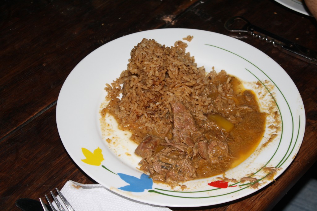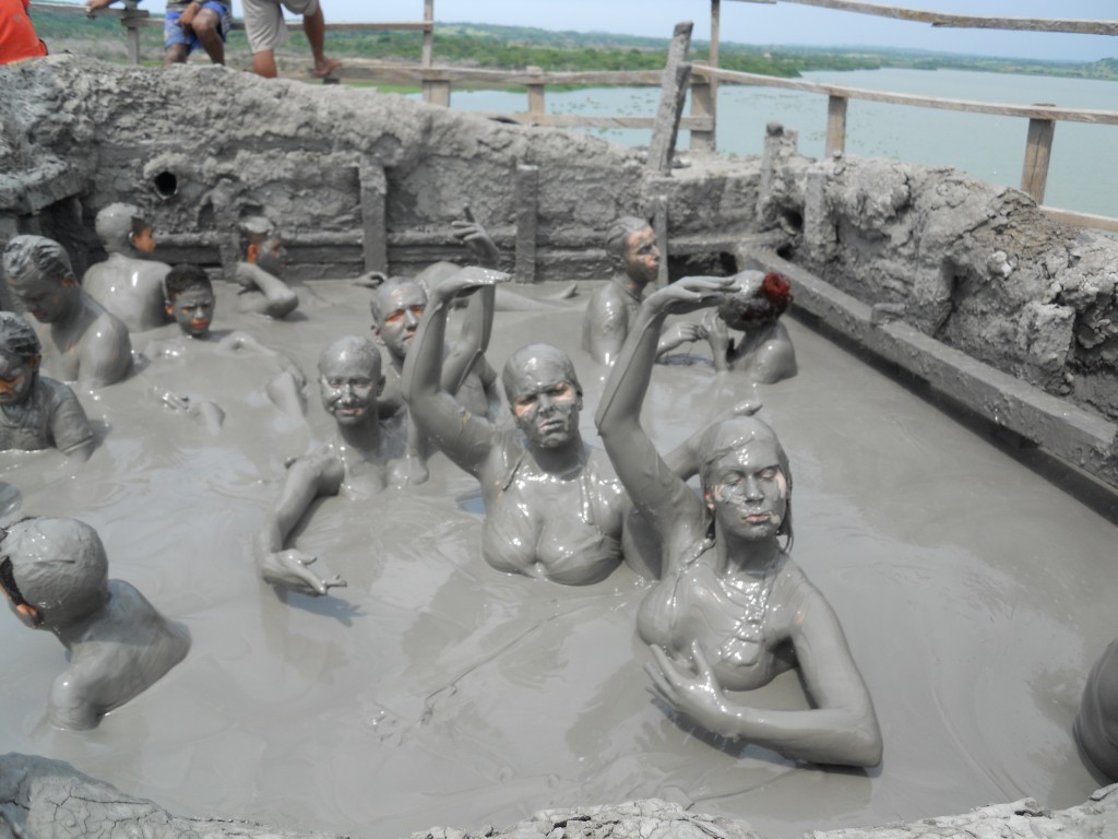 Fangen wir mit letztem Sonntag an: Wir waren bei einem Vulkan (Volcan del Totumo) der keine Lava sondern Schlamm ausspuckt. Darin kann man baden. Und man schwebt quasi auf dieser Schlammcreme. Also nichts mit ertrinken im Schlamm. Das fühlt sich echt gut an und soll natürlich gaaaaanz toll für die Haut sein. Man kann sogar Plastikflaschen gefüllt mit dem Schlamm kaufen. Danach wäscht man sich in der Lagune nebenan. Der Ausblick dort ist echt toll. Abends war das Abschiedsessen meiner Chefin, da sie im Oktober im Urlaub ist und eine meiner Mitbewohnerinnen danach wieder in Deutschland ist und die beiden sich nicht mehr sehen. Mein „Gastvater“ ist Franzose und kocht unglaublich gut: Als Vorspeise gab es Guacamole und Ceviche (Fischcocktail mit Zwieblen, Tomaten etc.) und als Hauptspeise Ziege. Dachte ich auch nicht, dass ich das mal essen würde, aber es war echt superlecker. Gekocht wie Gulasch, in Curry, mit Mango und Kokosreis – ein Gedicht 🙂