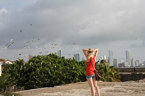 Heute und morgen werde ich dann dank des Ausweises vom Goethe Institut noch zu weiteren Vorträgen von großartigen Menschen gehen: Mario Vargas Llosa, Mario Mendoza, Giaconda Belli… Ich habe vor hier so viel mitzunehmen, wie es nur geht! In solchen Tagen wird deutlich, wie viel Charme und Platz gerade Cartagena für Kultur bietet. Denn nebenbei gibt es zu dem leider sehr kommerziellen Hay Festival natürlich auch ein alternatives Festival, was von meinem Lieblingskulturzentrum mit der großartigsten Pizza der Welt, der Ciudad Movil, veranstaltet wird. Im Rahmen dieses Festivals „La Otra“ zeigen wir Dienstag auch einen deutschen Dokufilm aus dem Bereich zeitgenössische Kunst: Berlin Calling. Auch da war ich schon bei der Eröffnung mit einem Champeta Konzert (eine Musikrichtung aus Cartagena, schaut mal: http://www.youtube.com/watch?v=FEQUg0__euQ) und einer gleichnamigen Ausstellung. Auch Zona Norte, eine Hip Hop Gruppe und Freunde meiner Chefin, geben dort Workshops und Konzerte und werden großartiger Weise nächste Woche bei unserer Eröffnungsfeier des renovierten Instituts auftreten und haben angeboten sogar einen Track zum Thema Heimat für mein Projekt zu schreiben.