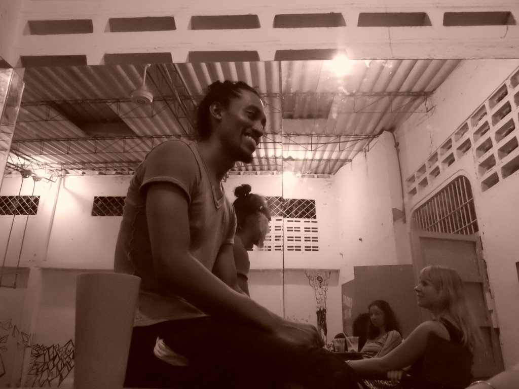 Heute und morgen werde ich dann dank des Ausweises vom Goethe Institut noch zu weiteren Vorträgen von großartigen Menschen gehen: Mario Vargas Llosa, Mario Mendoza, Giaconda Belli… Ich habe vor hier so viel mitzunehmen, wie es nur geht! In solchen Tagen wird deutlich, wie viel Charme und Platz gerade Cartagena für Kultur bietet. Denn nebenbei gibt es zu dem leider sehr kommerziellen Hay Festival natürlich auch ein alternatives Festival, was von meinem Lieblingskulturzentrum mit der großartigsten Pizza der Welt, der Ciudad Movil, veranstaltet wird. Im Rahmen dieses Festivals „La Otra“ zeigen wir Dienstag auch einen deutschen Dokufilm aus dem Bereich zeitgenössische Kunst: Berlin Calling. Auch da war ich schon bei der Eröffnung mit einem Champeta Konzert (eine Musikrichtung aus Cartagena, schaut mal: http://www.youtube.com/watch?v=FEQUg0__euQ) und einer gleichnamigen Ausstellung. Auch Zona Norte, eine Hip Hop Gruppe und Freunde meiner Chefin, geben dort Workshops und Konzerte und werden großartiger Weise nächste Woche bei unserer Eröffnungsfeier des renovierten Instituts auftreten und haben angeboten sogar einen Track zum Thema Heimat für mein Projekt zu schreiben.
