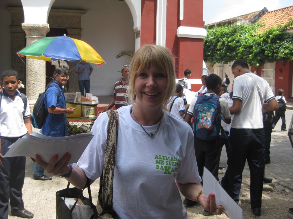 Fangen wir mit letztem Sonntag an: Wir waren bei einem Vulkan (Volcan del Totumo) der keine Lava sondern Schlamm ausspuckt. Darin kann man baden. Und man schwebt quasi auf dieser Schlammcreme. Also nichts mit ertrinken im Schlamm. Das fühlt sich echt gut an und soll natürlich gaaaaanz toll für die Haut sein. Man kann sogar Plastikflaschen gefüllt mit dem Schlamm kaufen. Danach wäscht man sich in der Lagune nebenan. Der Ausblick dort ist echt toll. Abends war das Abschiedsessen meiner Chefin, da sie im Oktober im Urlaub ist und eine meiner Mitbewohnerinnen danach wieder in Deutschland ist und die beiden sich nicht mehr sehen. Mein „Gastvater“ ist Franzose und kocht unglaublich gut: Als Vorspeise gab es Guacamole und Ceviche (Fischcocktail mit Zwieblen, Tomaten etc.) und als Hauptspeise Ziege. Dachte ich auch nicht, dass ich das mal essen würde, aber es war echt superlecker. Gekocht wie Gulasch, in Curry, mit Mango und Kokosreis – ein Gedicht 🙂