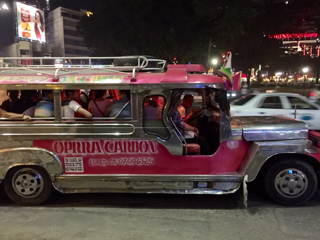 Jeepney. Der Fahrer hielt kurz mitten auf der Straße an und posierte für das Foto.