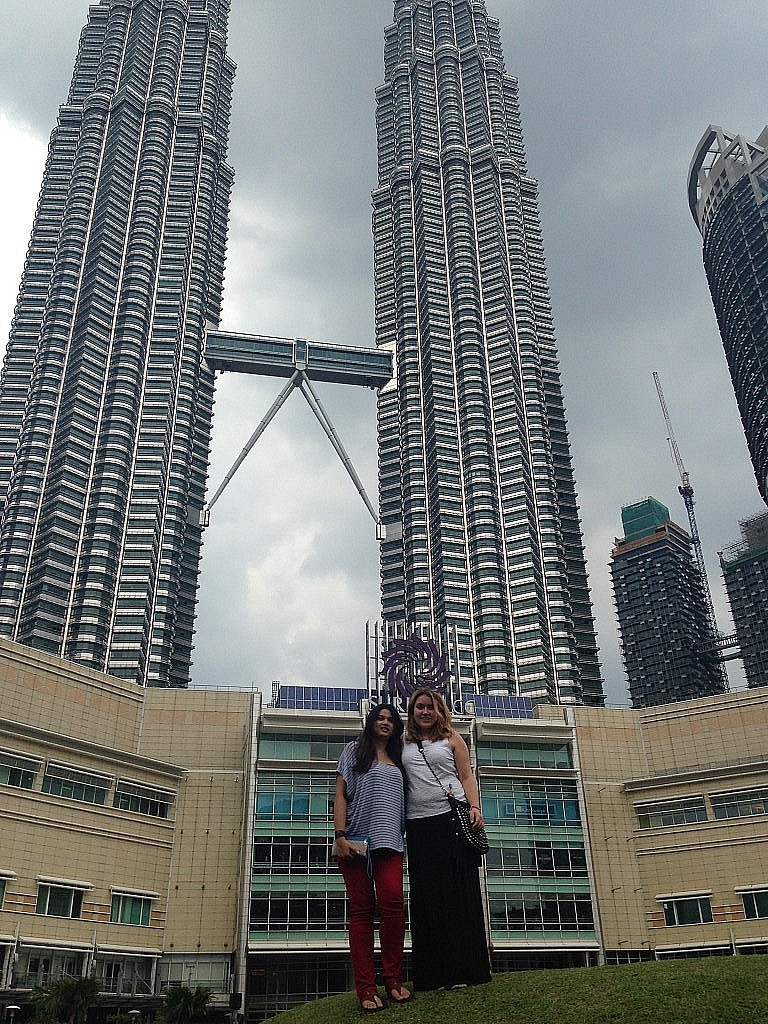 Aufgestanden um neun Uhr in der Früh, mit den Mitbewohnern gefrühstückt (Reis und Huhn beim Chinesen um die Ecke!?) und anschließend eine eindrucksvolle Stadtführung absolviert. Das ich erst durch ein Schild bemerkt habe, dass ich genau vor den Petrona Towers stand, ist wohl ein deutliches Zeichen für die Nachwirkungen der langen Reise. Plötzlich machte auch die Menschenmenge und die vielen posierenden Touristen einen Sinn. Denen habe ich mich direkt einmal angeschlossen und Nadia gleich mit aufs Bild geholt. Das Stadtbild ist heute geprägt von wehenden Flaggen, zumindest wenn sich dann mal ein Luftzug erbarmt und für etwas Abkühlung sorgt. Auf dem Rückweg zu unserem Apartment haben wir nocheinmal versucht das wifi-Problem zu lösen, leider wieder ohne Erfolg. Die Sterne stehen wohl gegen mich. Eine lange email an die Familie, gefühlt hunderte WhatsApp- und Facebook Nachrichten von und an Freunde später,