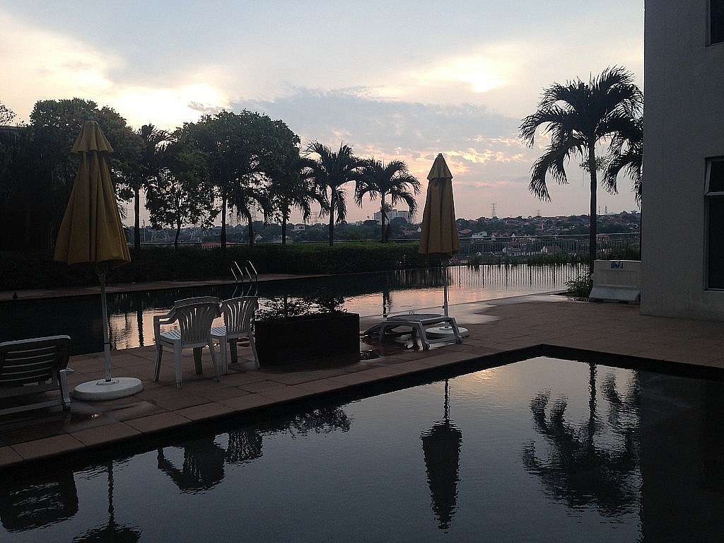 Ich bin da. Im (19. Stock des Millenium Square, in einem Ein-Schlafzimmer-plus-Bad-und-einer-ausgelagerten-(absolut schrottreifen)-Küche-Apartment. Und mit zwei wunderbaren Mitbewohnern im Zimmer nebenan, die mich sofort unter ihr Fittiche genommen haben, mich zum Einkaufcenter fuhren um Wifi-Tarife zu prüfen, mich dort empört von den „viel zu teuren“ Angeboten der Mobilfunkständen wegzogen und mich zu guter Letzt sogar noch zum Essen eingeladen haben. Das Gebäude sieht nicht total furchbar aus, im Keller ist eine Garage, im Erdgeschoss eine Art Shoppingmall mit Basar und Foodcourt und mit einem Aufzug geht es zur Ebene 2, wo jeder Besucher von der Security streng gemustert und in ein Buch eingetragen wird. Palmen, Pool, Gym, Badmintonhalle (laut der Mitbewohnerin lieben die Malayen Badminton) und ein toller Blick über Petaling Jaya, meinen Stadtbezirk. Dieser wird mit jedem Stockwerk besser und ist bei uns, im 19. Stock, nahezu atemberaubend. Ein Lichtermeer erstreckt sich vor meinem Fenster, gemischt mit den Schreien von begeisterten Fußballfans aus dem Restaurant gegenüber. Es ist Mitternacht und dutzende Feuerwerke beginnen. Auch wenn damit vermutlich eher der Nationalfeiertag und weniger meine Ankunft zelebriert werden soll, fühle ich mich dennoch angesprochen und freue mich. Es ist schließlich auch mein Feiertag.