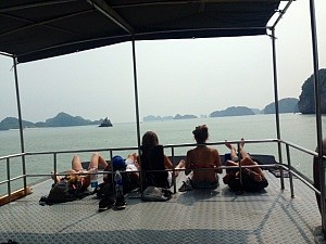 Die ganze Woche über hatte ich das dringende Bedürfnis alles aufzuschreiben, so schnell es geht, damit ich bloß nichts vergesse und nun sitze ich hier, kann keinen klaren Gedanken fassen und bin noch immer völlig überwältigt von den Eindrücken der letzten Tage. Gehen wir chronologisch vor: Am letzten Samstag fand ich mich plötzlich im Flugzeug Richtung Hanoi wieder, dort angekommen stellte man mir ohne großes Gezeter ein „Visum on Arrival“ aus und draußen setzte ich mich in einen Shuttlebus der mich direkt zum den Mädels nach Hause bringen sollte. Theoretisch. Denn irgendwie schien der Fahrer nicht aufmerksam zugehört zu haben, fuhr kreuz und quer durch die fremde, dunkle Stadt und ließ nach und nach alle anderen Fahrgäste raus. Und drehte sich schließlich erstaunt zu mir um und fragte, wo ich eigentlich hin wolle. Nach einem Blick auf den Zettel fing er heftig an den Kopf zu schütteln, auf Vietnamesisch zu reden und immer wieder „Taxi Taxi“ rufen, was mich in einen leichten Panikzustand versetzte. Während der knapp einstündigen Fahrt durch die stockdustere Stadt hatte ich bereits feststellen müssen, dass meine Handy streikte und ich weder raustelefonieren noch Anrufe annehmen konnte. So sah ich mein baldiges Ende schon vor mir, doch plötzlich hielt der Bus und nach einem schnellen Blick aus dem Fenster sah ich auf einmal Maja und Luisa vor mir stehen, die, ebenfalls etwas nervös, auf mich gewartet hatten. Die Erleichterung vermischte sich mit der Wiedersehensfreude und ließ diesen holprigen Start schnell vergessen. Wir quatschten noch ein wenig, vertagten längere Gespräche jedoch auf die folgenden Tage und fielen alle ins Bett. Am Sonntag (und auch die restliche Woche) nahm Maja mich unter ihre Fittiche, zeigte mir die Stadt, den absolut hammermäßigen Kaffee der mit Kokosnuss-Smoothie gemischt wird und am Nachmittag dösten wir an einem Hotelpool vor uns hin – mit einem tollen Blick auf den Westlake und Hanoi. Traditionell gab es eine Bun Cha Suppe zum Mittag, eingenommen auf circa 20 cm hohen Plastikhöckerchen mitten auf der Straße. Über diese recht unkomfortable Bestuhlung lässt sich streiten, die BunCha war es aber wert – wer hätte geahnt dass Nudelsuppe so gut schmecken kann!? Da ich ja eine Woche Zeit hatte und die Mädels unter der Woche (und teils auch am Wochenden) arbeiten mussten, schloss ich mich einer Tour des BackpackerHostels an. Zu einer höchst unchristlichen Zeit ging es am Dienstag los zur HaLongBay. Zahlreiche Bus-/Bootsfahrten später landeten wir im Paradis.. Eine abgelegene Bucht, durch dreckig-graue, hohe Felsen von der Außenwelt abgeschottet, mit weißem Sandstrand und noch circa 60 weiteren Backpackern, die bereits in den Tagen zuvor angekommen waren. Freudig wurden wir von eben diesen begrüßt, aßen Mittag und machten uns auf zu einer Rundfahrt durch die HaLongBucht. Landschaftlich ist diese einfach unbeschreiblich, obwohl es die Attraktion Vietnams schlecht hin ist, sehr ruhig und wir begegeneten kaum einem anderen Schiff. Trotz brennender Sonne gab man sich an Bord begeistert dem Bier hin und dementsprechend schnell wuchs die Gruppe zusammen. Es folgten zwei wunderbare Tage die von vielen neuen Bekanntschaften, entspannenden Strandtagen, guten Büchern, langen Nächten und erneut viel Gelächter bestimmt waren. Und von Plankton. Natürlich waren mir diese Mikroorganismen ein Begriff, dass diese jedoch meine bisher beeindruckenste Naturerfahrung sein würde (sagt das Ex-Waldorfkindergarten Kind!) hatte ich jedoch nicht erwartet. Und doch war es so, während wir auf dieser traumhaften Insel die Freude am Leben feierten, wo es bereits seit 18.00 Uhr stockdunkel war, zeigte sich im Wasser etwas, worauf wir alle gespannt gewartet hatten – sobald man im Wasser ist und sich bewegt, regt man das Plankton zu einem bläulichen Leuchten an. Zu einem wirklich hellen, klaren Leuchten. Bewegt man seinen Fuß, sieht man diesen auf einmal im Wasser scheinen, während man außen nicht einmal die Hand vor Augen erkennen kann. Ein Phänomen, welches ich zuvor noch nie beobachten konnte und das sich wohl mit keiner Kamera einfangen lässt. Leider und auch Gott sei Dank, denn so bleibt es (vorerst?) eine einzigartige Vietnam Erfahrung und wird zu keiner verblassenden Foto-Erinnerung, die dem Moment ohnehin nicht gerecht werden kann. Es blieb also bei der Konzentration auf das Wesentliche und auf den Moment. Das könnte eine der wichtigsten Lektionen aus diesem Jahr werden.