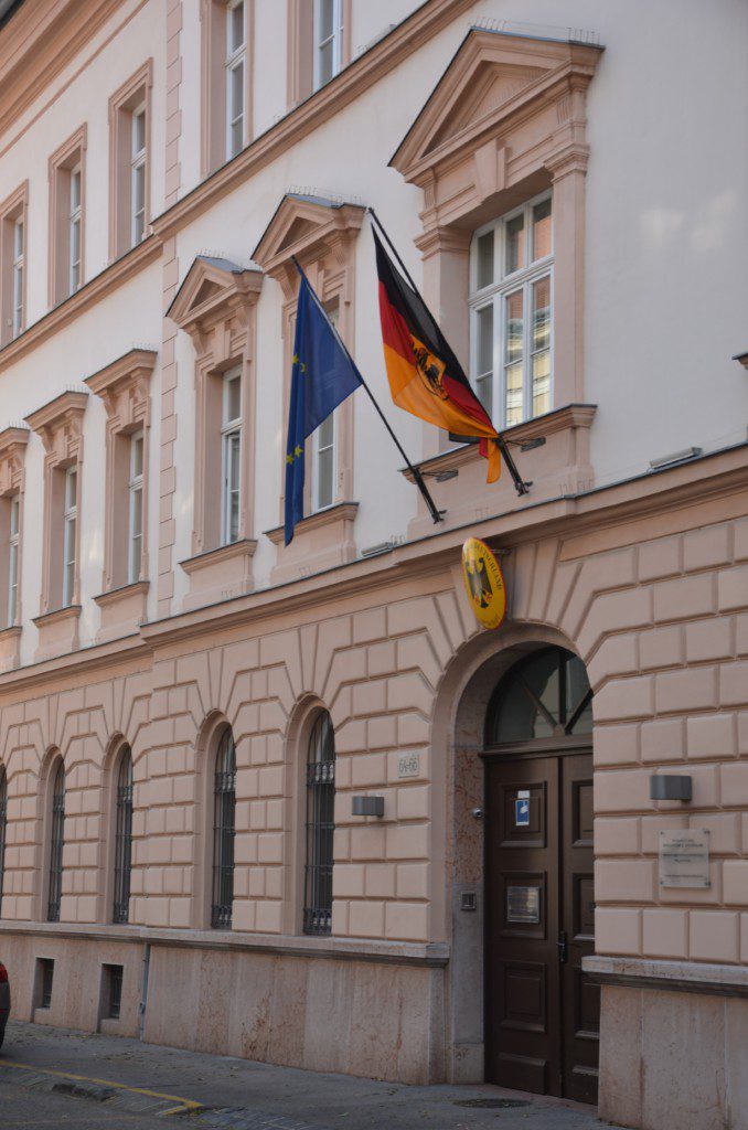 Vorheriges BildNächstes Bild Deutsche Botschaft In der deutschen Botschaft sind Greta, Isabella und ich zu einem Informationsgespräch eingeladen gewesen