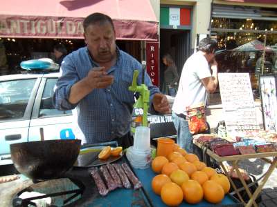 Frischer Orangensaft auf dem Sonntagsmarkt von San Telmo