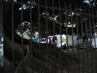Unter diesem Reisenbaum haben sich Wohnungslose ein Lager aufgebaut