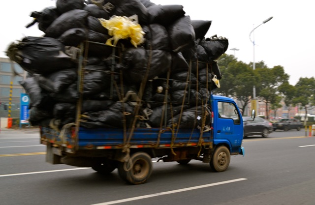 24 Euro! Es kostet zwar etwas Überwindung, sich in den Suzhouer Straßenverkehr zu trauen, nach wie vor gilt das Recht des Größten und mit meinem Fahrrad bin ich in der Hierarchie lediglich eine Stufe nach oben gerutscht: Höher stehen immer noch E- Fahrräder, E- Roller, Autos, Lastwagen und Busse. Aber es macht auch Spaß. Häufig steht man in einer Gruppe von 20- 30 anderen Zweiradfahrern an einer Ampel, oder vor einem Verkehrshüter. Hier kam ich auch gleich in den Genuss einer Belehrung, ich stand mit meinem Rad nämlich 10 cm zu weit rechts, sodass den armen, armen Rechtsabbiegern jetzt nur noch 1 Meter und