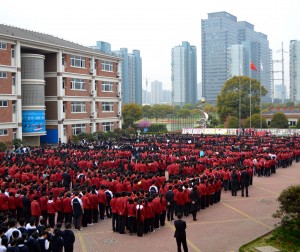 Man ist hier gezwungen, alles möglichst schnell und möglichst gut zu machen, ansonsten hat man kaum eine Chance, um an die Spitze zu kommen. Genau das spiegelt ja auch das Schulsystem wider: Es gibt Rankinglisten für die besten Schulen; die, die an der Spitze stehen, haben den höchsten Zulauf an neuen Schülern und Eltern, die bereit sind, die horrenden Schulgebühren zu bezahlen. An dieser Schule hier gab es dieses Jahr wieder so viele neue Schüler, dass diese ein Auswahlverfahren durchlaufen und Tests schreiben mussten (Dreimal dürft ihr raten, wann..? Richtig, letzte Woche während der Feiertage). An den teuersten Schulen steht die Schulleitung dann folglich aber auch am meisten unter Druck, den Eltern etwas für das viele Geld zu bieten, es gibt neben dem regulären Unterricht noch Evening Classes und Hausaufgabenbetreuung, und das alles auch am Wochenende. Der letzte macht das Licht aus, und das ist normalerweise um 21:30 Uhr, kann aber auch mal später werden. Als ich einmal in meiner zweiten oder dritten Woche hier zwei Schülerinnen gefragt habe, was diese am Wochenende vorhaben, sahen sie mich nur mit großen Augen an und sagten „Lernen…?!“. Ich denke hier oft zurück an meine letzten Jahre in der Schule. 2010 gab es in vielen bayrischen Städten Streiks gegen das G8. Es wurde gegen hohe Stundenzahlen, Überbelastung und Stofffülle demonstriert. Verglichen mit dem hier hatten wir es aber doch recht angenehm. Natürlich kann man das deutsche Schulsystem nicht einfach mit dem chinesischen vergleichen, dafür sind Land und Leute einfach viel zu unterschiedlich. Genauso wie ich am chinesischen Schulsystem verzweifeln würde, geht es bestimmt auch chinesischen Schülern in Deutschland. Die Lernformen sind völlig unterschiedlich. Chinesische Schüler können unglaublich viel auswendig lernen, das alles ist jederzeit abrufbar und wird auch wieder und wieder verwendet. Die Speicherkapazitäten im Kopf wirken bei manchen Schülern hier unersättlich. Der Großteil des Unterrichts ist Frontalunterricht, wobei das in den Fremdsprachen schon viel lockerer gehandhabt wird, es gibt auch oft Gruppenarbeiten. Chinesische Schüler gehen also mit einem wirklich enorm hohen Wissensstand aus ihrer Schullaufbahn, nur leider fehlen dann oft die Kompetenzen, dieses Wissen auch anzuwenden oder sich neues Wissen selbstständig zu erschließen. Beide Schulsysteme haben also ihre Vor- und Nachteile.