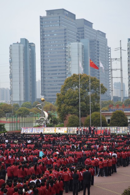 An sich sind die Schüler hier doch ganz anders, als ich noch in Deutschland erwartet hätte: Man hört ja oft, dass chinesische Schüler angeblich so müde, überfordert und völlig überarbeitet seien und dass sie im Unterricht regelmäßig einschlafen würden. Das bestätigt sich hier nicht. Ich habe das Gefühl, dass sich eine durchschnittliche chinesische Klasse kaum von einer deutschen unterscheidet, außer, dass es hier im Unterricht vielleicht etwas lauter ist. In den Mittagspausen schlafen zwar einige Schüler an ihren Tischen im Klassenraum, aber generell sind die Schüler hier mindestens so aktiv und lebhaft wie deutsche Schüler. Vor allem wird hier auch sehr viel Sport gemacht, in den Zwischenstunden und Pausen, in den Sportstunden oder einfach nach Schulschluss. Natürlich lebt man hier sozusagen für die Schule, ich habe aber nicht das Gefühl, dass sich die Schüler sehr groß daran stören würden. Die meisten sind es auch einfach nicht anders gewöhnt. Wieder einmal ein Beispiel dafür, dass China doch um Welten besser ist als sein im Ausland doch manchmal durchwachsener Ruf.