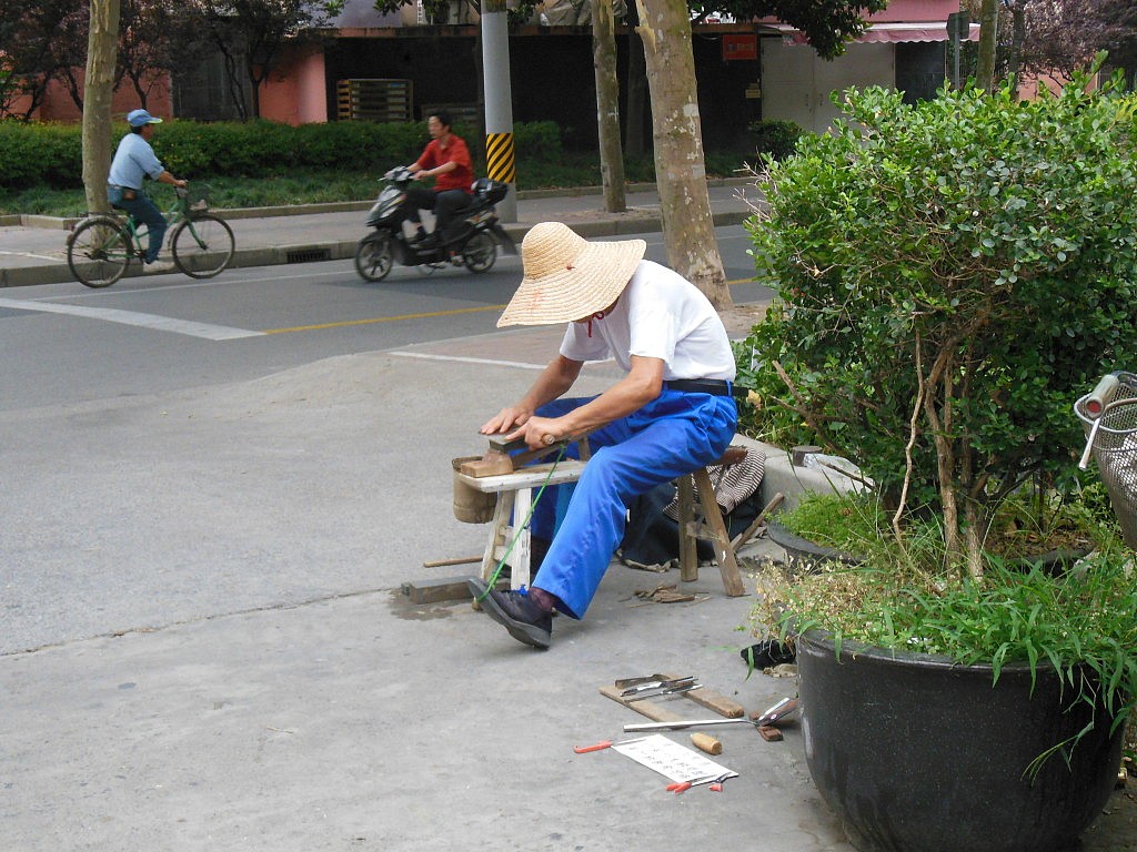 Oder: In Chengdu auf der Straße. Ein älterer Herr um die 70, in den hinteren Hosentaschen ein Rückenkratzer und ein Fächer, links in der Hand eine Plastiktüte mit Gemüse vom Markt und rechts ein kleiner, zusammenklappbarer Hocker. Er trägt ein schlichtes, weißes Unterhemd und eine kurze Hose, an den Füßen sieht man Badelatschen. Neben ihm geht sein etwa gleichaltriger Freund, mit dem er sich angeregt unterhält (und dieser trägt eine kleine Glastrinkflasche gefüllt mit Tee). So richtig urig eben. Ich kann mir meinen eigenen Großvater vorstellen, wie er früher zwischen den anderen Männern stand und über Dinge diskutierte oder vielleicht in einer Gruppe mit 10, 15 Leuten zwei anderen beim Mahjongg spielen zusah.