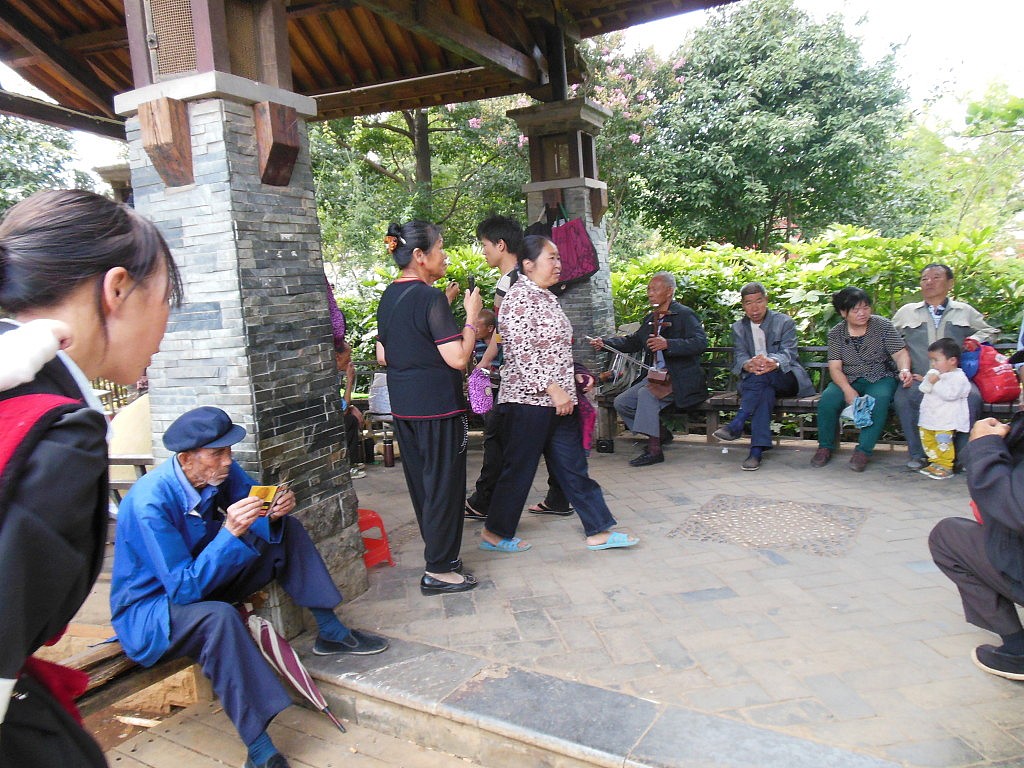 Rechts Männer, die da immer zusammen mit dem Wachmann rumsitzen und klönen. Weiter hinten noch eine Gruppe