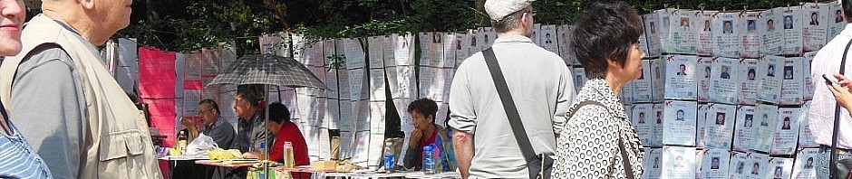 Die Sonne scheint auf aufgespannte Regenschirme, die aneinandergereiht die Wege säumen. Auf ihnen kleben DIN A4 Seiten, die bei näherer Betrachtung eine Art Steckbrief zu sein scheinen. Alter, Herkunft, Geschlecht, Werdegang und Gehalt einer Person stehen auf diesen Steckbriefen notiert. Fotos sind eine Rarität. Ganz unten: Telefonnummern bei Interesse.