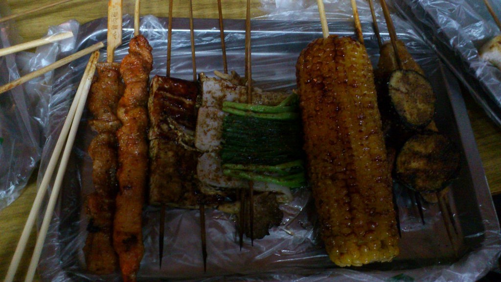 Gegen sechs gehe ich hoch, hole etwas Geld und gehe zum Grill zwei Straßen weiter. Diese Straßengrills sieht man relativ häufig; man kann sich aus einem großen Angebot von Gemüse, Fisch, Fleisch und anderem Zeugs seine eigene Portion zusammenstellen und grillen lassen. Das Ganze kostet meist nicht mehr als 2 Euro, ist also günstig und vor allem lecker!
