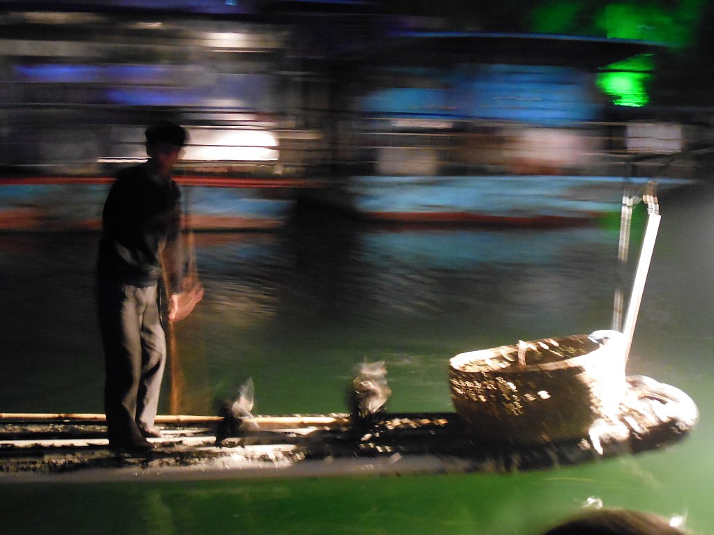 Wir haben abends an einer Kormoranshow teilgenommen, wo wir sehen konnten, wie man traditionell mit Kormoranen fischt (das sind Wasservögel, die für den Fischer die Fische fangen). Das Fischen selbst war nicht unbedingt so spektakulär, aber die Atmosphäre nachts auf dem Fluss durch die bergige Landschaft zu fahren und ringsum war Stille – das war schon sehr schön.