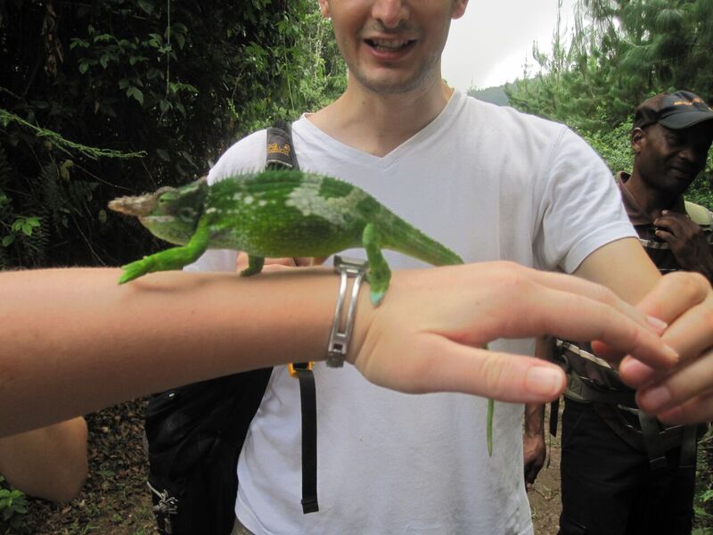 Aber das tollste waren unsere Wanderungen! Am ersten Tag sind wir mit einem Guide Richtung Magamba-Rainforest losgezogen. Das war auch gut so, denn sonst hätten wir die hier niemals selber entdeckt:Ich wusste nicht, dass ich Chamäleons so toll finde, aber jetzt sind sie meine neuen Lieblingstiere. Nix mehr mit Fröschen, Leute schenkt mir ein Chamäleon! 😀