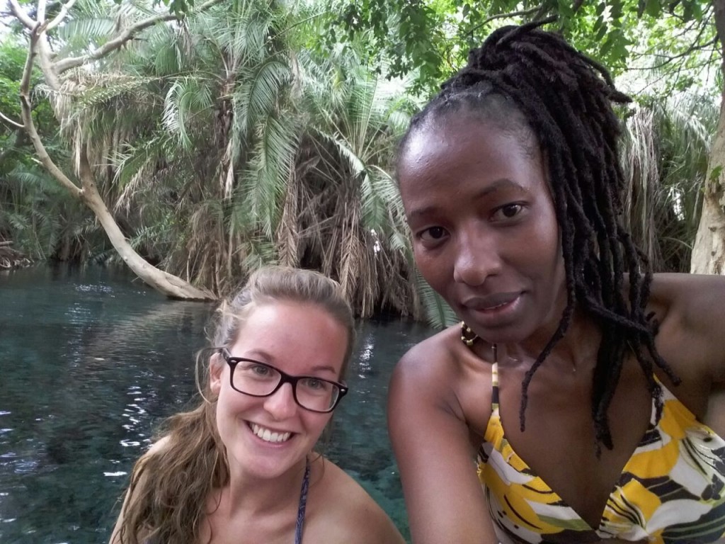 Bevor wir abends wieder nach Dar es Salaam geflogen sind, haben wir einen Stopp bei den sogenannten „heißen Quellen“ in der Nähe von Moshi gemacht. Heiß war es dann aber gar nicht, eher lauwarm, dafür aber kristallklares Wasser!!