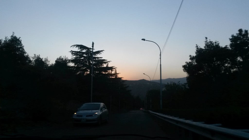 Nach einem guten Abendessen, natürlich mit Wein, fuhren wir zurück nach Telavi und organisierten uns wieder ein Sammeltaxi nach Tbilissi. Es war bereits dunkel und man konnte leider nichts mehr von der schönen Aussicht sehen.