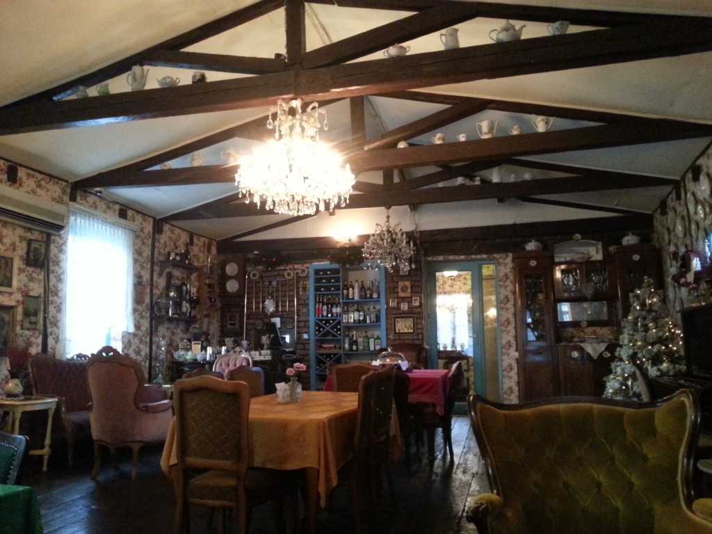 Nach Beendigung des Interviewmarathons galt es noch, Protokolle und Gutachten auszufüllen, unterschreiben zu lassen und nach Bonn zu schicken. Teil des Besuchs der Kommission war auch ein Ausflug nach Kachetien zum Museum in Tsinandali (s. mein zweiter Beitrag), in dem wir die gleiche Führung mit der gleichen Frau machten, wie ich damals mit Julia. Auch dieses Mal im Eiltempo, was jedoch auch dem knappen Zeitplan des Ausflugs zuzuschreiben war. Weiter ging es zur Weinprobe und Führung durch die Weinkeller, zu einem georgischen Restaurant und schließlich noch zu einer Klosteranlage. Dort sollen die Menschen unter den einfachsten Bedingungen leben, was uns sehr beeindruckte – bis einer der Kommissionsmitglieder gleich zwei WLAN-Anschlüsse auf seinem Handy angezeigt bekam 😉 Vielleicht haben sie sich also doch etwas an das 21. Jahrhundert angepasst.