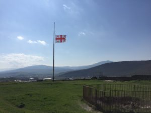 Angefangen hat der Montag eigentlich am Sonntagabend. Kurz vorm Schlafengehen habe ich eine Nachricht von jemandem bekommen, den ich nicht kenne. Es war ein Freund von einem kulturweit Freiwilligen, der gerade auch in Tiflis ist. Er fragte, ob Tina und ich Lust haben, mit ihm am Montag nach Uplisziche zu fahren. Uplisziche ist eine Höhlenstadt, die 10 km von Gori (Stalins Geburtsstadt) entfernt liegt. Vom Tifliser Busbahnhof „Didobe“ braucht man etwa 1,5 Stunden dorthin.