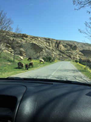 In Gori pendelten wir an einem Busbahnhof von Taxifahrer zu Taxifahrer, bis wir uns auf einen Preis einigten. Der Taxifahrer fuhr uns nach Uplisziche. Es war eine aufregende Fahrt. Das rasante Tempo und die gefährlichen Manöver waren wir schon von Tbilissi gewöhnt.