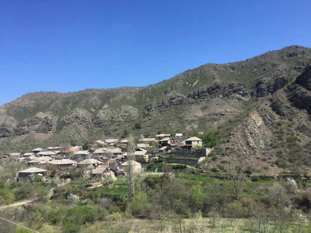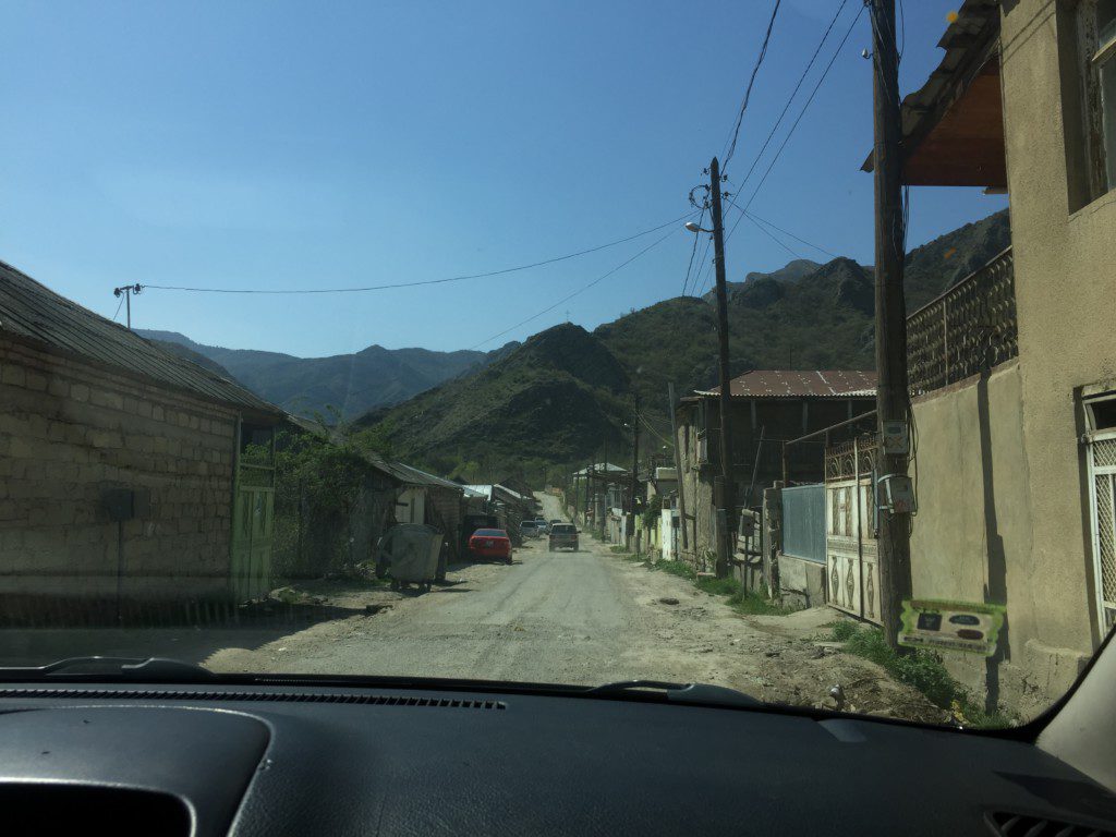 Positiv gestimmt ließen wir uns auf den Geheimtipp des Taxifahrers ein. Er fuhr uns weit über Gori hinaus. In einen kleinen Ort, der den Namen Ateni trägt. Zumindest glauben wir, dass der Ort so heißt. Angekommen ließ er uns raus und erklärte, dass jede Stunde eine Marshrutka nach Gori fährt.