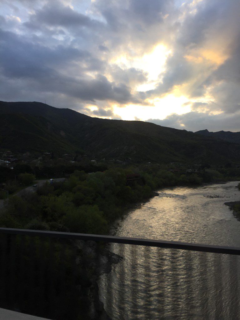 Auf dem Rückweg kamen wir am Fluss vorbei. Das Auto war nicht mehr da. Zur Marshrutka schafften wir es pünktlich. Wir waren die ersten Fahrgäste, weil der Bus von ganz oben startete und die Leute bis runter nach Gori aufsammelte. Die ganze Zeit über war ich furchtbar müde. In Gori angekommen, mussten wir in die nächste Marshrutka steigen, um nach Tbilissi zu kommen. Es war sehr voll und ich konnte nicht schlafen, weil ich mich nirgendwo anlehnen konnte. Dabei wollten wir abends noch ausgehen.