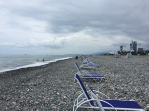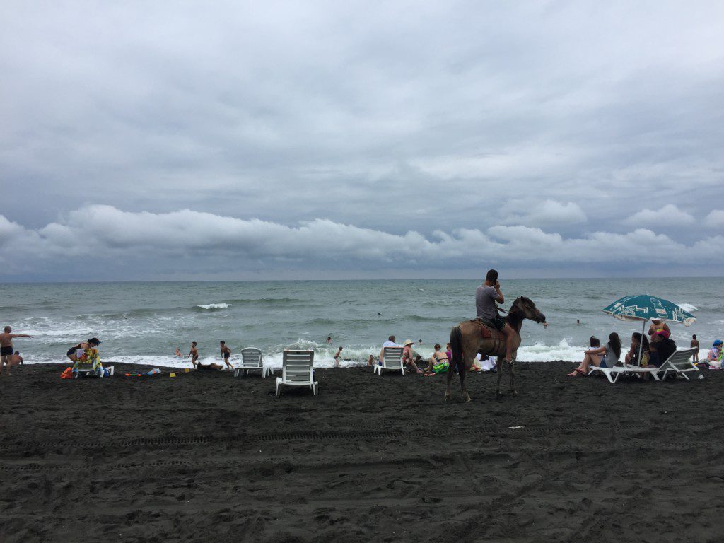 2 Tage in Batumi haben mir gereicht. Ich habe bestimmt nicht alles gesehen und mir vielleicht voreilig meine Meinung gebildet, aber ich habe Lust weiterzureisen. Nächster Stop: Ureki. Dort soll es einen schönen Strand mit Magnetsand geben, der nicht nur cool aussieht, weil schwarz, sondern auch heilende Kräfte aufweist. Leider war mein „3-Sterne“-Hotel ein kompletter Reinfall. Kinder, vertraut nicht zu sehr aufs Internet und lest Bewertungen. Nach meinem Aufenthalt dort habe ich eine Kritik geschrieben und es hat teuflisch viel Spaß gemacht. Gut, dass ich in Ureki nur eine Nacht verbringen wollte. In Ureki war ich dann auch endlich schwimmen. Ganze 5 Minuten lang. Das Schwarze Meer ist, wie alte Mythen, Sagen und Legenden beschreiben, sehr wild und stürmisch.