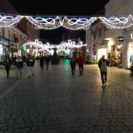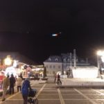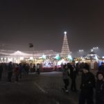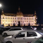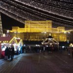 - Blick vom Weihnachtsmarkt auf den „Palast des Volkes“ (der riesige Prunkbau aus Ceaușescu-Zeiten, in dem nun das Parlament sitzt).