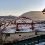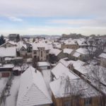 - Ein Blick über die schneebedeckten Dächer Brasovs.