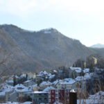 - Ein Versuch mit mittelmäßiger Handykamera einmal den beleuchteten „Brasov“-Schriftzug – hier in den Nationalfarben – festzuhalten.