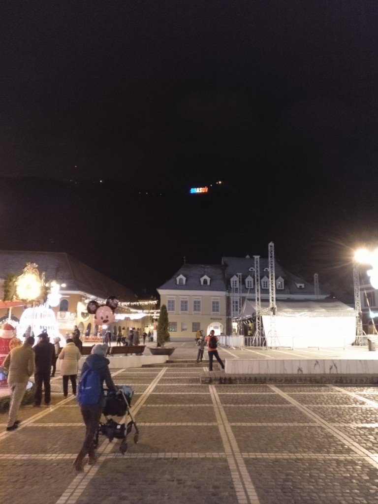 ← Zurück Weiter → Ein Versuch mit mittelmäßiger Handykamera einmal den beleuchteten „Brasov“-Schriftzug – hier in den Nationalfarben – festzuhalten.