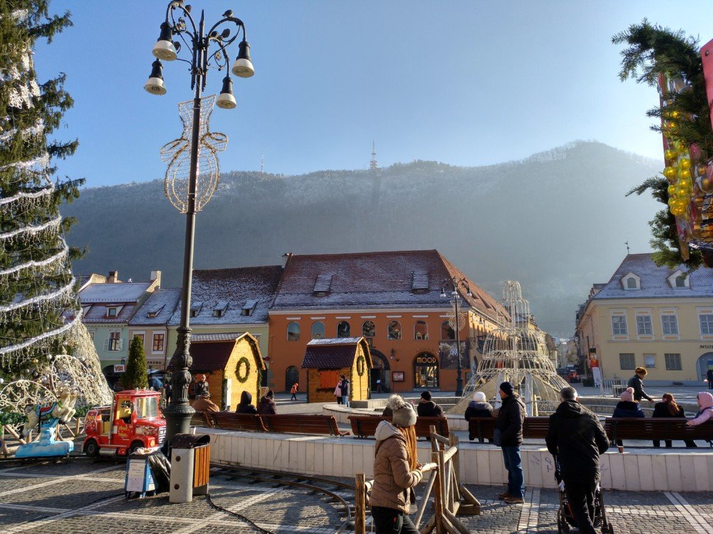 Der Rathausplatz (Piața Sfatului) bei bestem Winterwetter.