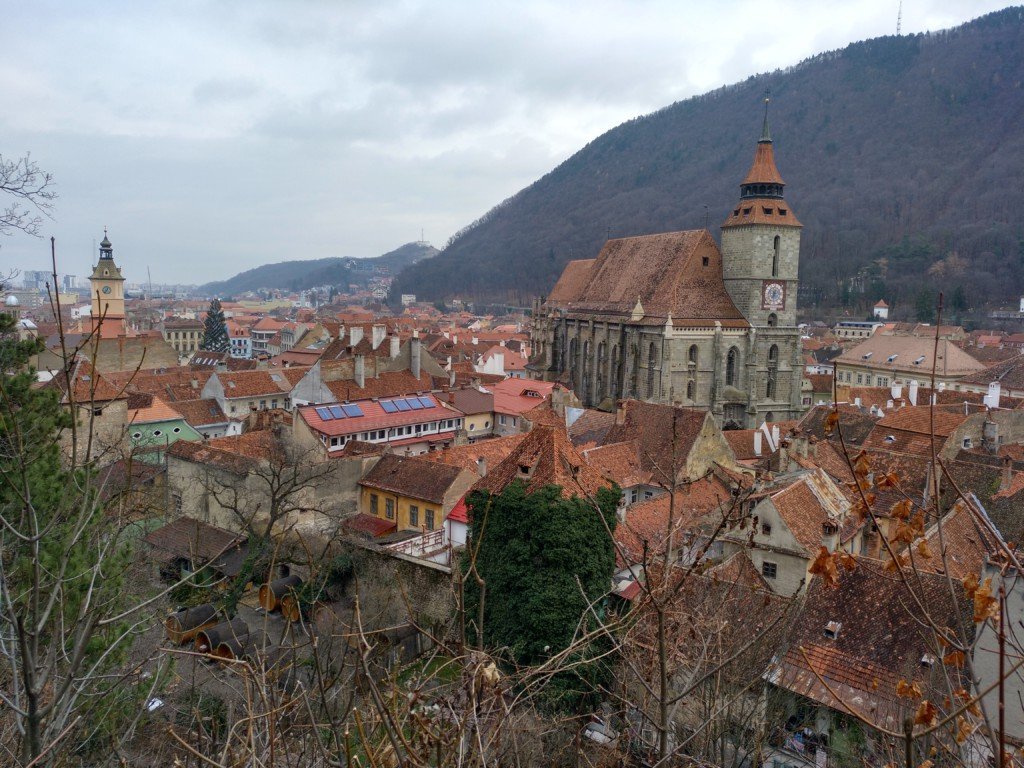 Ausblick von einem alten Wachturm der Stadtmauer. Blick auf die Schwarze Kirche.