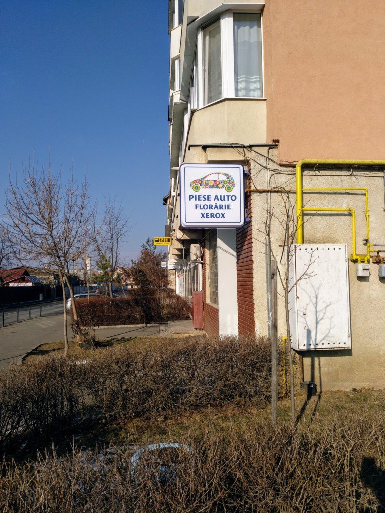 Ein Laden, der gleich alle Arten Läden, die man hier häufiger findet, in einem vereint. Piese Auto = Autoteile, Florărie = Blumenladen, Xerox = Kopieren (nach der gleichnamigen amerikanischen Kopiererfirma).