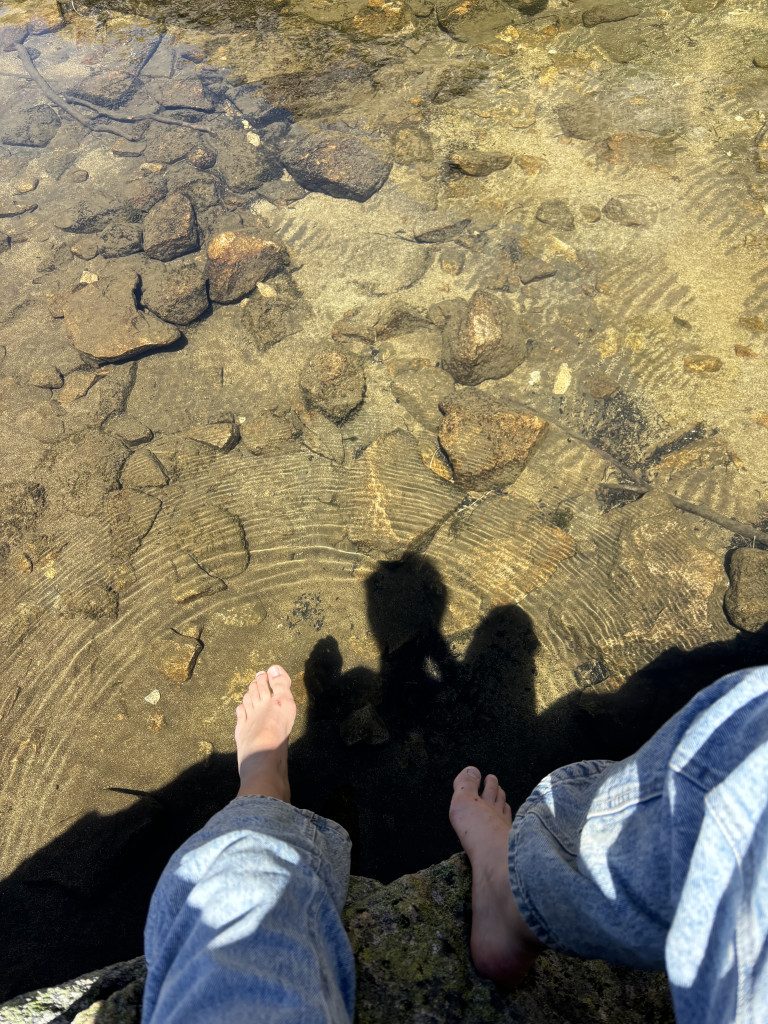 Oben angekommen konnten wir uns zwischen Refugios und Steinhängen, an denen ein paar „komplett Irre“ (Zitat Julius) hinauf und hinab kletterten, auf einen Felsen im See legen, die nach und nach eintreffenden Wanderer beobachten, verschiedene Amphibien inspizieren und uns kurz ausruhen.