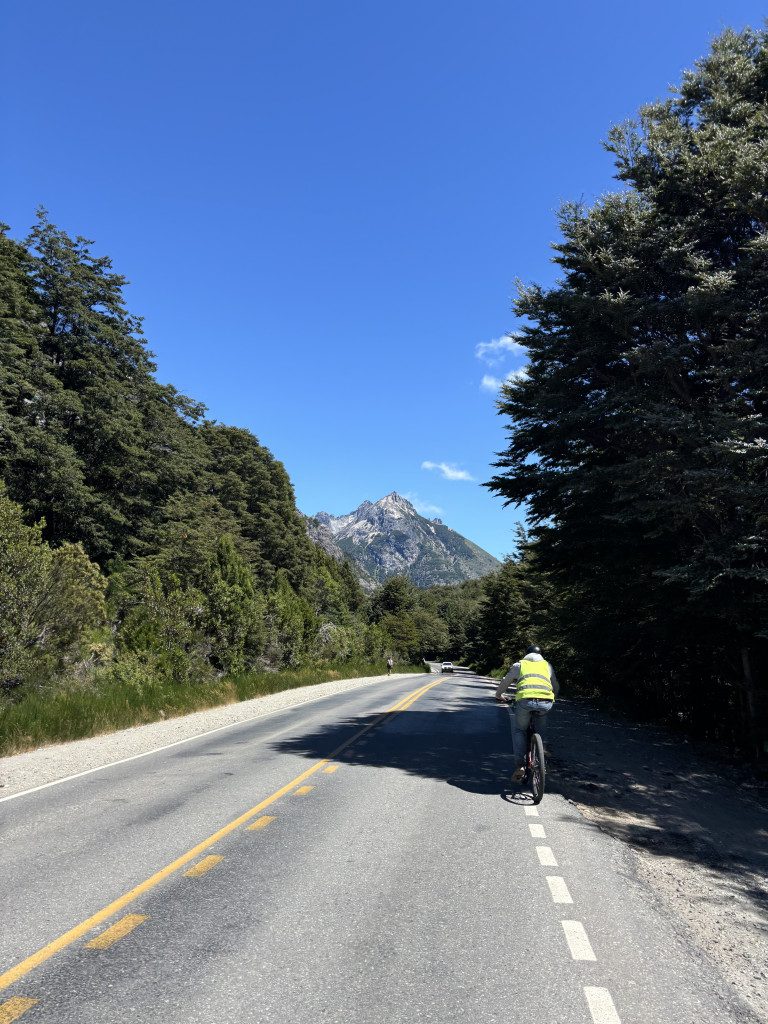 Am nächsten Morgen ging es dann auf fünf Stunden Schlaf los zu einer Fahrradtour um den See, die insgesamt etwas kürzer war, als gedacht, aber zeitweise ziemlich steil. Der Ausblick war umwerfend schön, die Bilder sind leider nur semi-ästhetisch, weil wir neben viel zu großen Helmen auch halb auseinanderfallende Warnwesten tragen mussten. Das hat dem ganzen Unterfangen aber keinen Abzug getan und als wir wieder in Dina Huapi ankamen waren wir zwar fertig, aber auch ziemlich zufrieden.