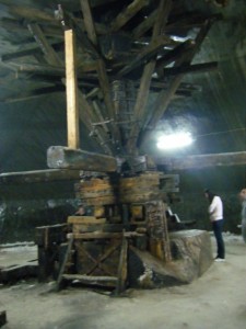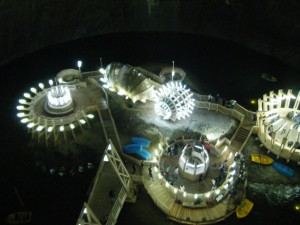 Der Abend war eindeutig sehr gelungen und gleich am nächsten Morgen trafen sich wieder einige von uns zu Käsekuchen und Kaffee im Café Vienna. Mit einem anderen Deutschen, M., und einer weltreisenden Amerikanerin, C., machte ich mich an diesem Tag in die Umgebung Clujs auf. Dass M. mit dem Auto unterwegs ist war natürlich genial, denn Autos bedeuten in Rumänien Unabhängigkeit. Wir fuhren zur Salina Turda, einer stillgelegten Salzmine, in der eine riesige Halle wie ein Rummel ausgestaltet wurde. Es gibt ein Riesenrad, Boote, man kann Billiard, Minigolf, Tischtennis, Federball und Bowling spielen. Der Wahnsinn! Es stellt sich einem unweigerlich die Frage, ob das so notwendig ist, in einem alten Bergwerk bowlen zu gehen, aber toll sieht es ohne Frage aus.