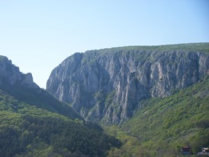 Im Anschluss fuhren wir weitere zehn Kilometer um zu einer beeindruckenden Berglandschaft zu kommen. Dort war es leider ziemlich voll, dennoch hüpften wir vergnügt und, in meinem Fall, barfuß durch die Wiesen, genossen nach langem Warten Mici, längliche Fleischbälle, ähnlich Cevapcici und spazierten durch die Schlucht – wobei ich in Ermangelung an gutem Schuhwerk irgendwann aufgeben musste.