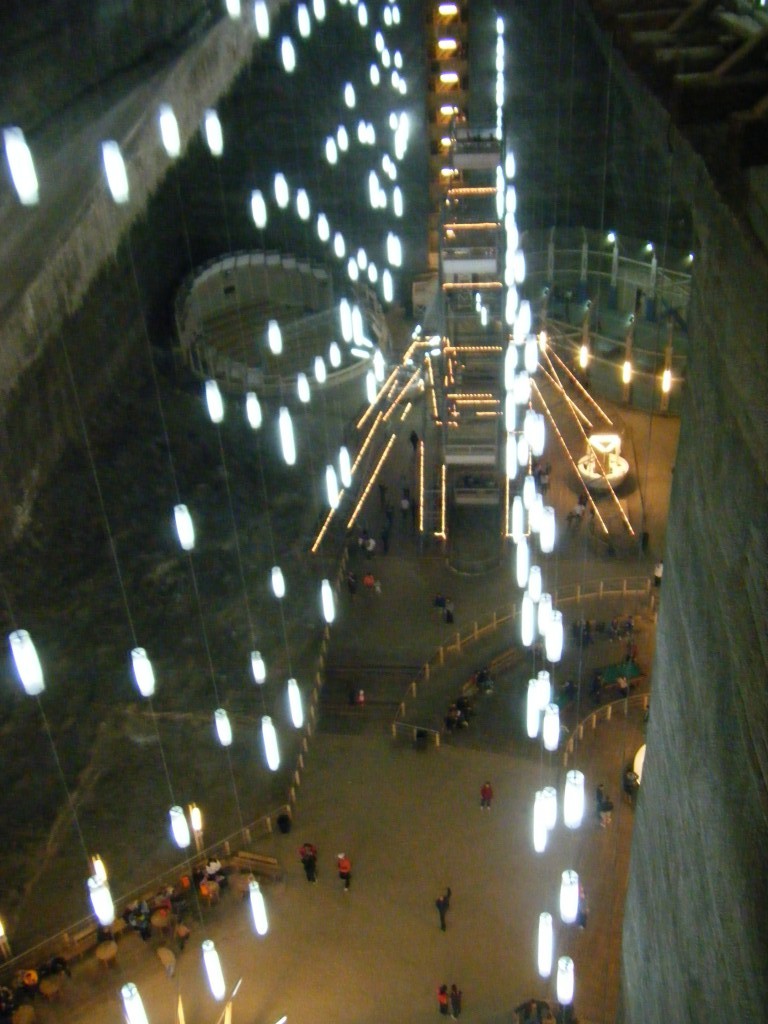 Der Abend war eindeutig sehr gelungen und gleich am nächsten Morgen trafen sich wieder einige von uns zu Käsekuchen und Kaffee im Café Vienna. Mit einem anderen Deutschen, M., und einer weltreisenden Amerikanerin, C., machte ich mich an diesem Tag in die Umgebung Clujs auf. Dass M. mit dem Auto unterwegs ist war natürlich genial, denn Autos bedeuten in Rumänien Unabhängigkeit. Wir fuhren zur Salina Turda, einer stillgelegten Salzmine, in der eine riesige Halle wie ein Rummel ausgestaltet wurde. Es gibt ein Riesenrad, Boote, man kann Billiard, Minigolf, Tischtennis, Federball und Bowling spielen. Der Wahnsinn! Es stellt sich einem unweigerlich die Frage, ob das so notwendig ist, in einem alten Bergwerk bowlen zu gehen, aber toll sieht es ohne Frage aus.